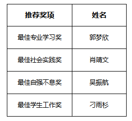 按照成人网址 共产主义青年团委员会发布的《关于开展成人网址 第三十届“校园最佳”大学生评选活动的通知》相关要求,成人网址 经学生自愿申报、成人网址初评等环节,结合候选人综合情况认真研究评审,拟推荐以下4名同学参评成人网址 第三十届“校园最佳”大学生,特此公示。